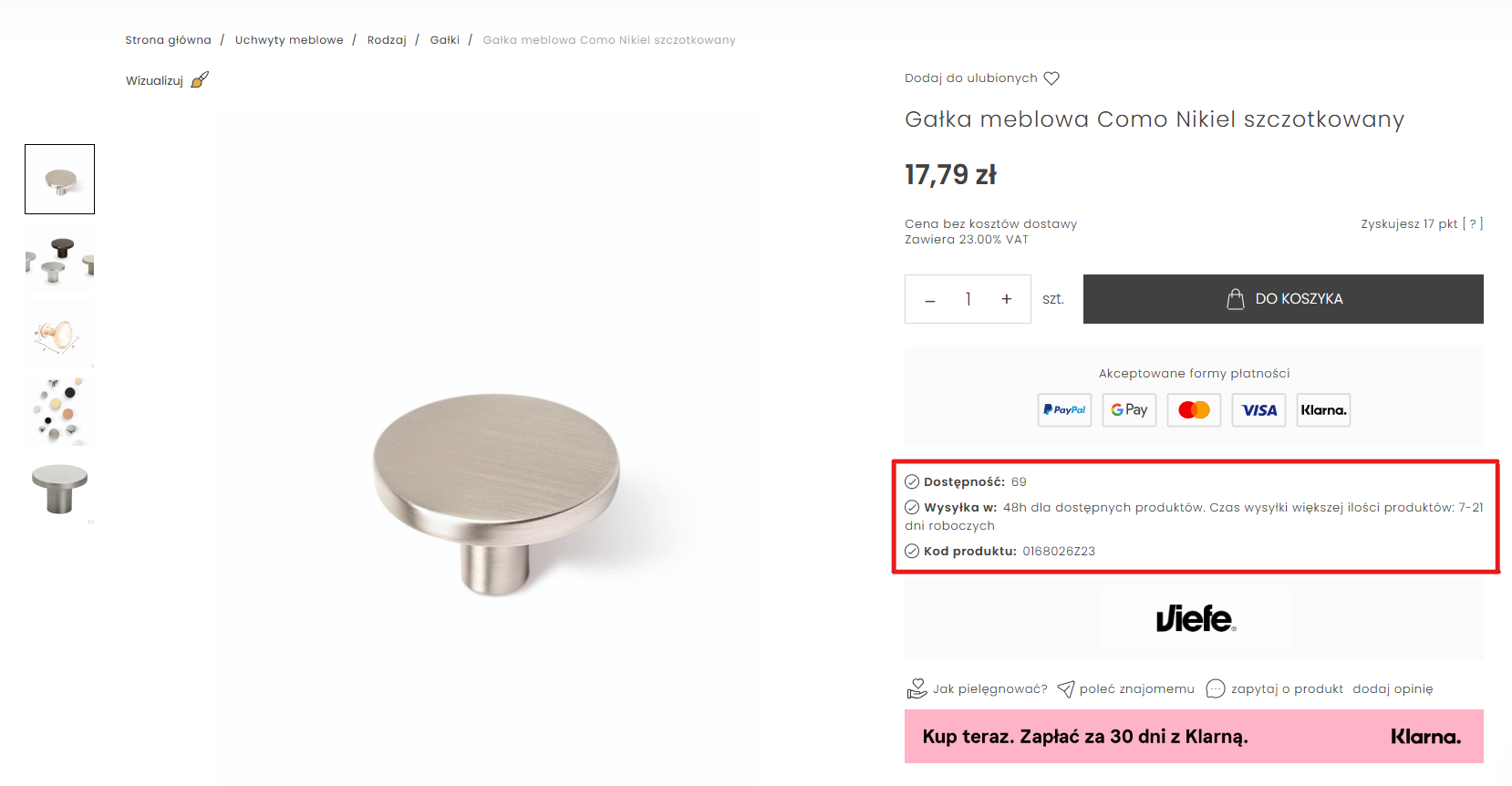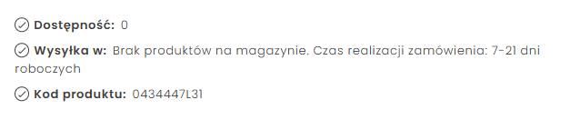 Die Verfügbarkeit jedes Produkts finden Sie auf der Produktseite direkt unter dem grauen Button „IN DEN WARENKORB”, unterhalb der akzeptierten Zahlungsarten.