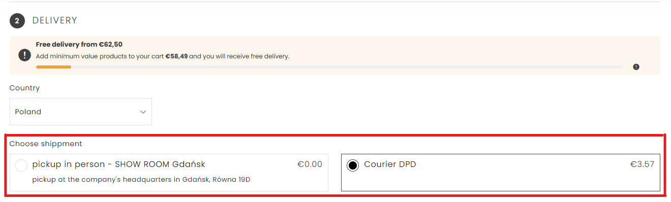 5) Complete the basket by choosing the form of delivery and payment method: