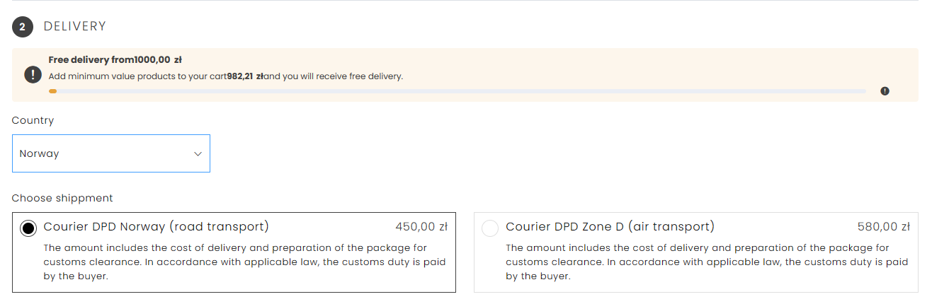 We offer free delivery for orders over 250 PLN.