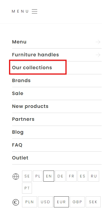 In the top left corner, there is a Menu - within it, you can find the "Our Collections" tab.
