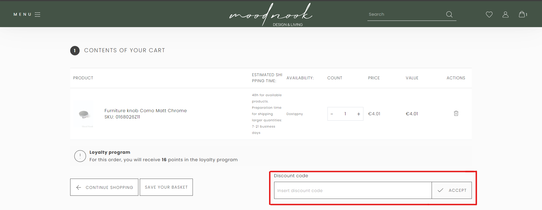 4) Si vous avez reçu un code de réduction, saisissez-le dans le champ "code de réduction" et cliquez sur "ACCEPTER".