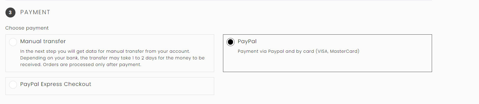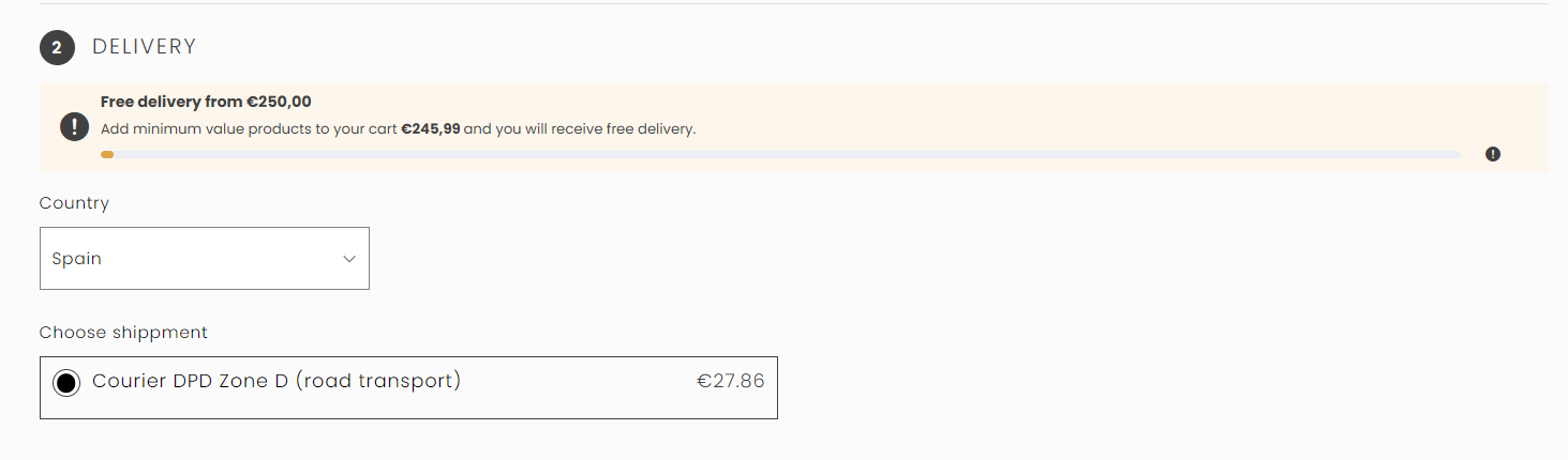 5) Complétez le panier en choisissant la forme de livraison et le mode de paiement :
